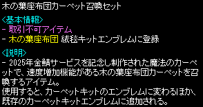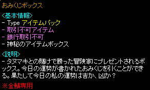 ![]() 金鯖専用のアイテムのため、本鯖に持ち帰って使用することはできません。 |
