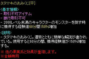 ※「タヌマキのおみくじ」のボタンが活性化されない場合、フィールド移動またはリログすることで解決する場合があります。