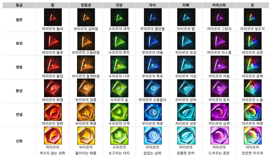 開放能力値 | 開放確率 | 稀少 | 英雄 | 恒常 | 伝説 | 神話 |
